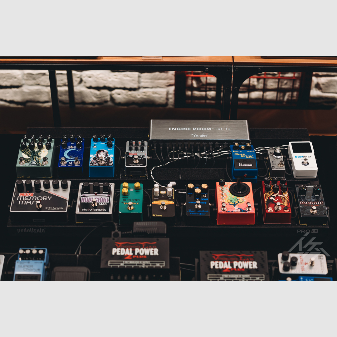 イケシブ2Fのアンプ&エフェクター専門店アンプステーションが再現した、ハタさんのエフェクターボードを参加者の方が試奏できるパートも。ハタさんによるシューゲイザーサウンドの“妙”をぜひご体感ください!